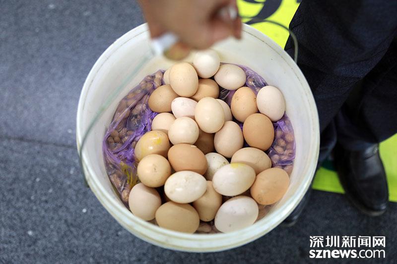 老家益陽的徐爺爺此次返深,從家里帶了雞蛋還有家鄉(xiāng)的花生,滿滿裝了一大桶