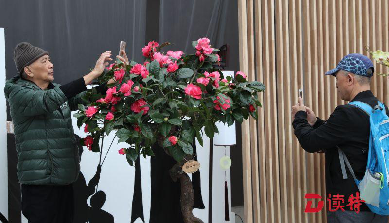 在室外展區(qū),從公園南門沿著前往主展區(qū)的園路,富有中式設計風格的展板依次展出與茶花相關的繪畫和書法作品,以及造型優(yōu)美、品種奇特的茶花,形成集裝飾、展示、科普于一體的茶花文化展示長廊;位于花卉館附近的"新茶弄色"則利用茶花盆景和切花藝術之美,吸引游客的觀賞興趣,不少游客紛紛駐足拍照;位于粵清園的"茶顏悅色"景點,各色山茶花品種點綴在清爽雅致的嶺南園林中,凸顯嶺南園林藝術的精致,也展現了山茶花色彩多樣的婀娜魅力;位于茶花園的"茶花物語"則以原有景觀設計為基礎,以日式造景講訴東方茶花之美,為游人打造了韻味濃厚的東方式茶花展示園。