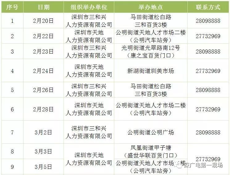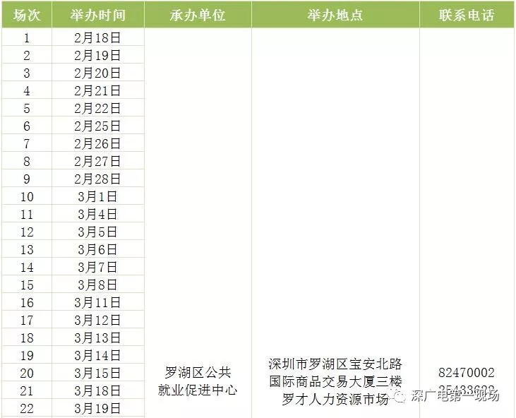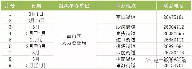 其中,深圳市公共就業(yè)服務中心26場,福田區(qū)27場,羅湖區(qū)40場,鹽田區(qū)14場,南山區(qū)9場,寶安區(qū)22場,龍崗區(qū)60場,龍華區(qū)56場,坪山區(qū)18場,光明區(qū)25場,大鵬新區(qū)9場。