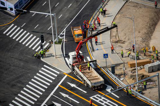 圖為部分交通信號燈已安裝就位。