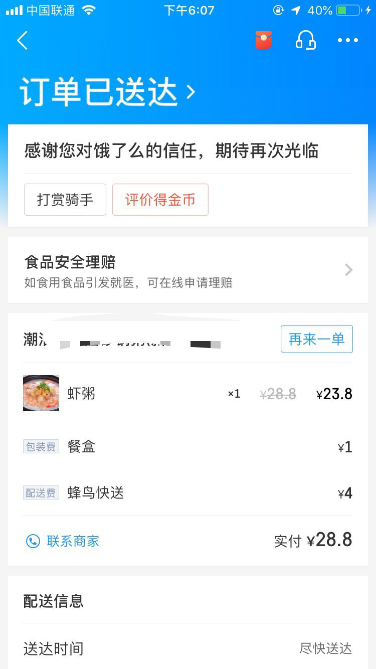 2月12日上午10點(diǎn)多,市民黃先生在餓了么外賣平臺點(diǎn)了一份潮汕砂鍋粥。2個小時后,肚子快餓癟的黃先生等到了外賣小哥的電話。外賣小哥告訴他,外賣在電動車上被偷了,對此很抱歉,麻煩黃先生重新點(diǎn)餐,并希望添加他的微信進(jìn)行賠償。