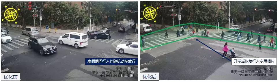 為了保障學生安全過街,深圳交警恢復黃貝/德智路口上下學時段信號燈管控模式,非上下學時段啟用黃閃控制模式。