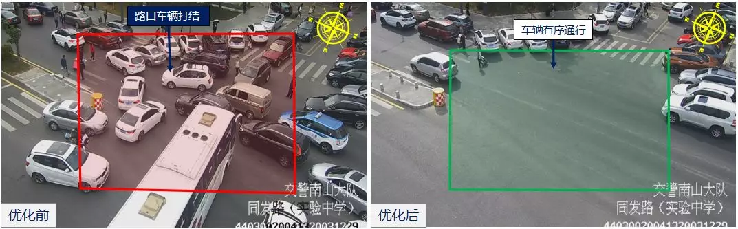 2月17日下午,接送學生至深圳實驗學校的車輛較多,大量車輛停靠路邊排隊等候,影響車輛通行效率,導致同發(fā)/新高路口車輛溢出,深圳交警根據(jù)現(xiàn)場情況,采用步伐保持放行,優(yōu)化路口配時參數(shù)及綠信比,快速疏解同發(fā)/同沙路口北面車輛,防止同發(fā)/新高路口打結。