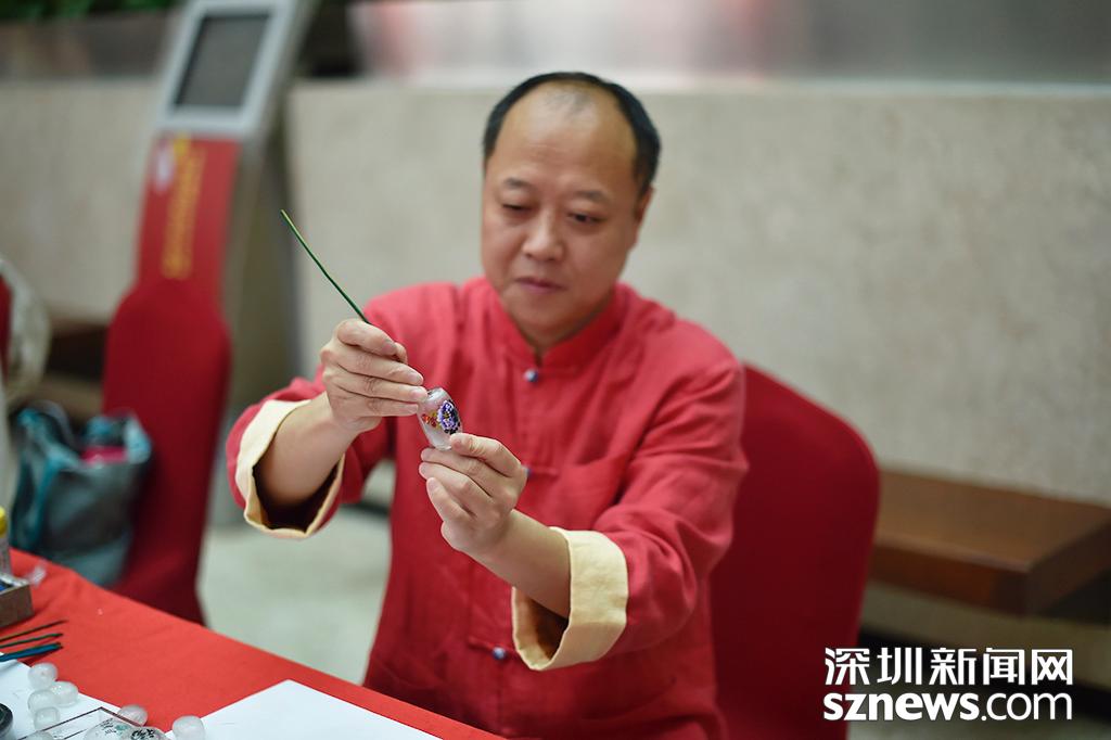 活動(dòng)現(xiàn)場(chǎng),內(nèi)畫藝人正在展示其作品。內(nèi)畫是我國(guó)特有的傳統(tǒng)工藝,現(xiàn)代內(nèi)畫藝術(shù)源于京派,分為京、冀、魯、粵、秦五大流派,河北衡水被文化部命名為“中國(guó)內(nèi)畫之鄉(xiāng)”。