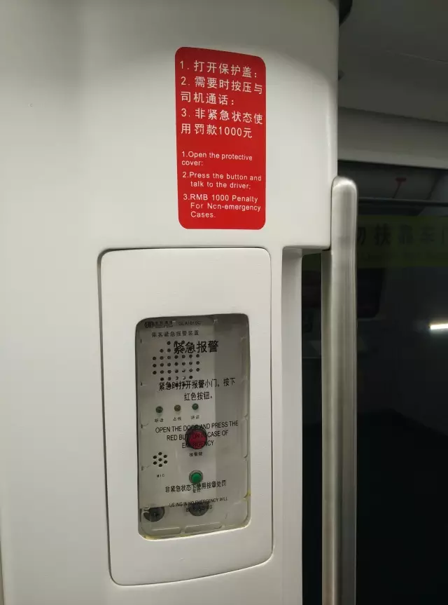 客室緊急對講裝置安裝于客室車門左側,每節(jié)車設有4個,在緊急情況(如發(fā)生乘客身體不適、爭執(zhí)或者衣物被車門夾住等情況)下,乘客可打開報警小門,根據防護罩上提示進行操作,與司機進行對話。