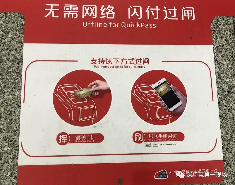 記者了解到,深圳市地鐵已全面受理金融IC卡及銀聯(lián)閃付,金融IC卡指的是各銀行發(fā)行的印有銀聯(lián)標識及閃付“QuickPass”標識的芯片銀行卡(包括借記卡和信用卡);銀聯(lián)閃付支持HuaweiPay、ApplePay、SamsungPay、MiPay等各種手機Pay,消費者無需解鎖手機和打開APP,即可完成支付。市民在地鐵站內貼有“銀聯(lián)閃付”、“全國交通一卡通”標識的閘機前,便可直接用金融IC卡、手機刷卡進出站,也可在無網(wǎng)絡的條件下直接用于地鐵過閘。