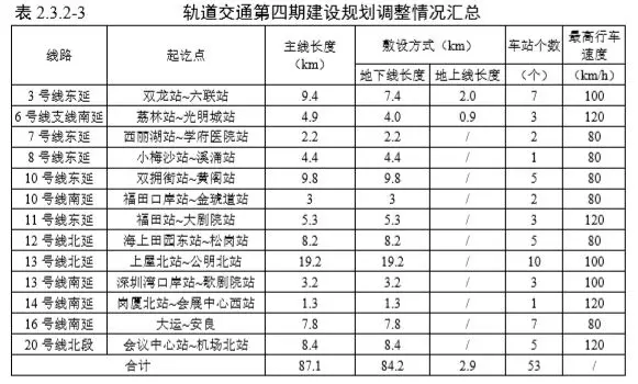 深圳市政府于2018年底啟動(dòng)編制的《深圳市城市軌道交通四期建設(shè)規(guī)劃調(diào)整(2017~2022)》已出爐,結(jié)合深圳市城市發(fā)展對(duì)軌道交通的需求緊迫性,最終確定第四期建設(shè)規(guī)劃調(diào)整(2017-2022)建設(shè)項(xiàng)目包括3號(hào)線東延、6號(hào)線支線南延、7號(hào)線東延、8號(hào)線東延、10號(hào)線東延、10號(hào)線南延、11號(hào)線東延、12號(hào)線北延、13號(hào)線北延、13號(hào)線南延、14號(hào)線南延、16號(hào)線南延、20號(hào)線北段共計(jì)11條線路,13個(gè)項(xiàng)目。