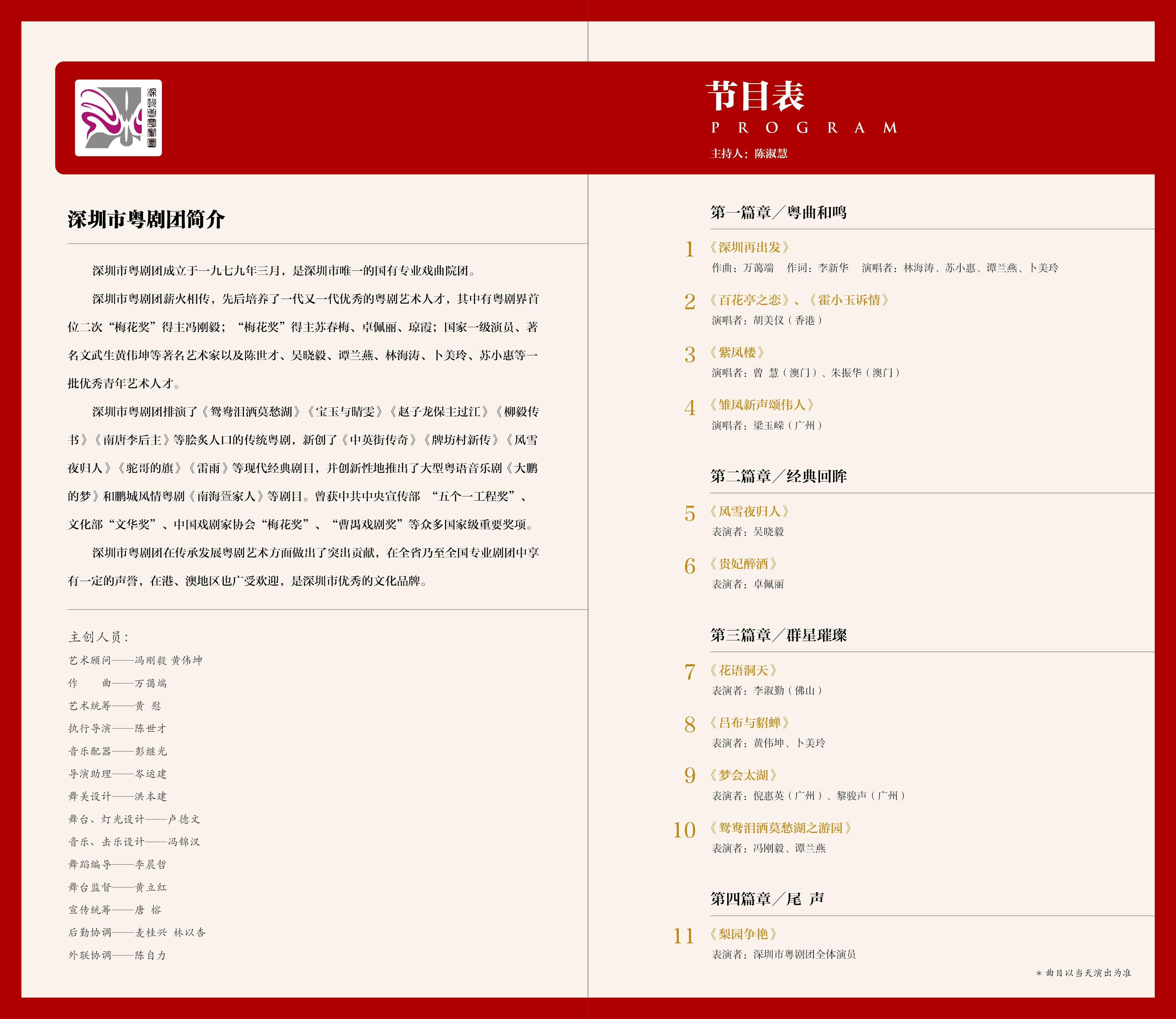 “輝煌四十年,深圳再出發(fā)”。四十年來,深圳粵劇團緊跟城市發(fā)展的步伐,風雨兼程,培養(yǎng)了馮剛毅、蘇春梅、黃偉坤等一批優(yōu)秀的粵劇表演藝術(shù)家,創(chuàng)作出《風雪夜歸人》《中英街傳奇》《駝哥的旗》等一大批優(yōu)秀藝術(shù)作品,打造了具有地方特色的粵劇“碼頭”。