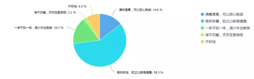 對于深圳白領(lǐng)非常關(guān)心的餐飲店面,接近6成受訪者認(rèn)為比之前有所改善,14.6%受訪者認(rèn)為可以放心就餐