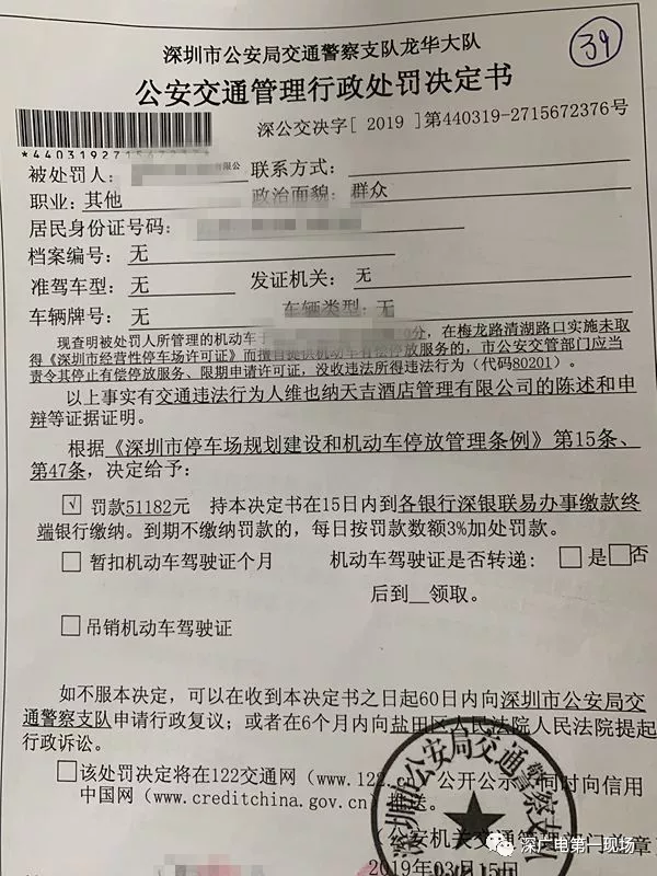 根據(jù)《深圳市停車場(chǎng)規(guī)劃建設(shè)和機(jī)動(dòng)車停放管理?xiàng)l例》和《深圳市經(jīng)營(yíng)性停車場(chǎng)設(shè)施管理暫行辦法》的規(guī)定龍華交警依法沒收該停車場(chǎng)非法所得51182元,處罰款5000元,并開具整改通知書,要求該酒店限期內(nèi)進(jìn)行整改。