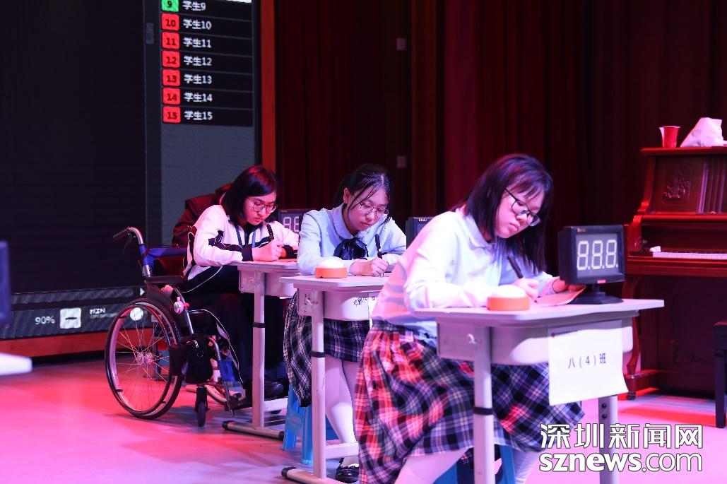 校決選現(xiàn)場,初中的同學(xué)們通過猜詞、聽寫、國學(xué)知識搶答三個(gè)環(huán)節(jié),帶來了精彩的視聽盛宴。他們用掌聲相互鼓勵,用眼神激勵彼此,整個(gè)活動下來,溫暖又特別。有學(xué)生告訴記者,他們非常期待深圳市復(fù)選,希望借復(fù)選的環(huán)節(jié)——國學(xué)知識測評、優(yōu)秀圖書推薦演講和國學(xué)才藝秀磨練自己,提升自己。