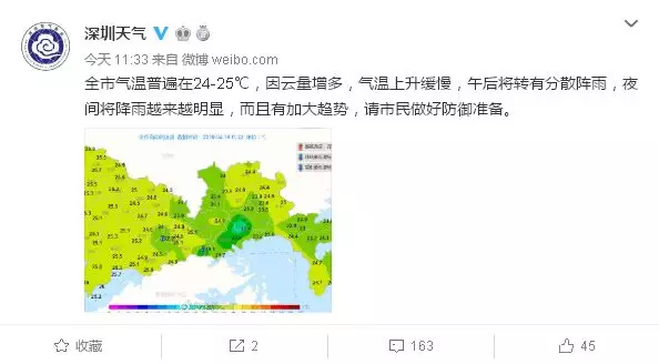 深圳新聞網(wǎng)2019年4月18日訊 今日天氣:陰天間多云,午后轉(zhuǎn)(雷)陣雨,夜間降雨趨于頻密;氣溫22-27℃