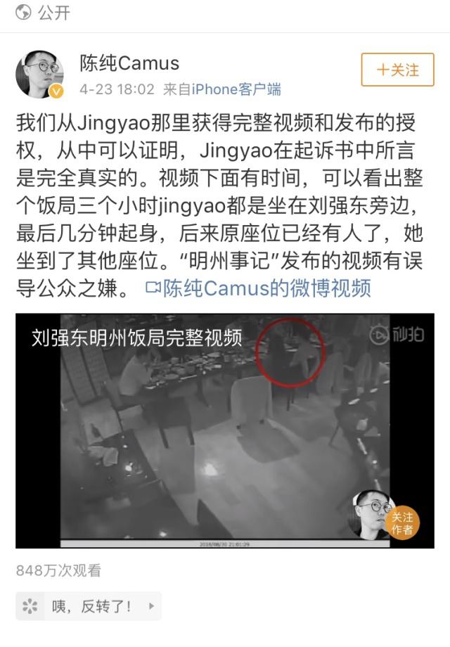 就在人們以為事件就此平息的時候,又爆出一系列和該案有關的料。首先是本案當事人LIUJINGYAO宣布起訴京東集團及劉強東。4月22日、23日微博上爆出監(jiān)控視頻以及劉強東美國律師和LIUJINGYAO之間電話談話的錄音。