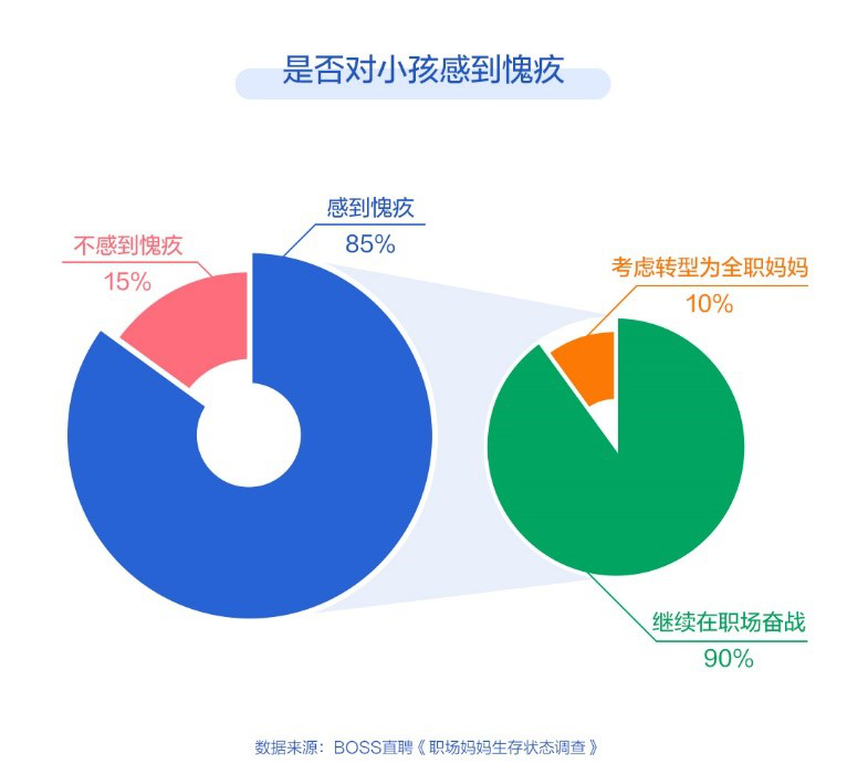 根據(jù) BOSS直聘發(fā)布的《2019職場(chǎng)媽媽生存現(xiàn)狀調(diào)查報(bào)告》,有65%的受訪職場(chǎng)媽媽認(rèn)為自己有潛在的抑郁傾向,逾八成媽媽對(duì)孩子感到愧疚,工作時(shí)長(zhǎng)是職場(chǎng)媽媽在工作中最為看重的要素。一面是嗷嗷待哺的孩子,一面是苦心經(jīng)營(yíng)的工作,事業(yè)與家庭的平衡或成職場(chǎng)媽媽焦慮的根源。