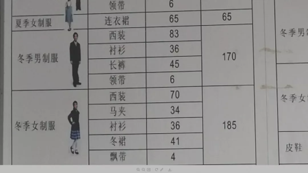 從龐女士發(fā)過來的圖片中記者看到,此前這家店的校服價(jià)格表中,小學(xué)學(xué)生冬季制服價(jià)格為165元。