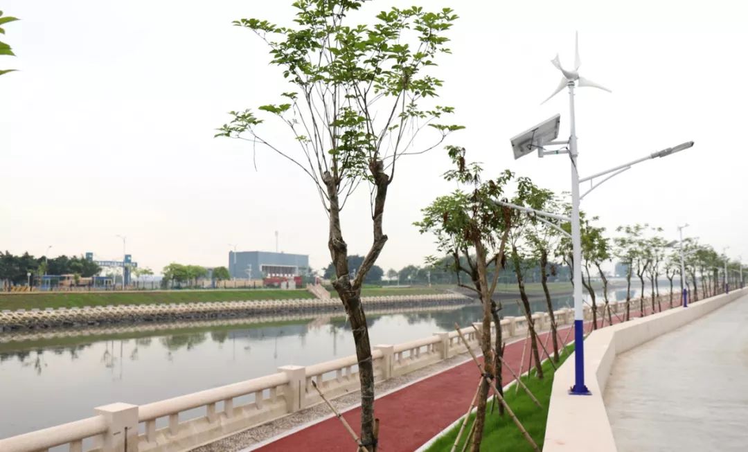 河流沿岸安裝了風(fēng)能、太陽(yáng)能路燈