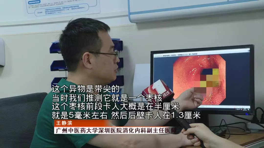從內(nèi)鏡顯示屏上看,張女士胃竇部位卡著一顆棕色核樣異物,如果不及時取出,會有胃穿孔的風(fēng)險,那這異物到底是啥呢?