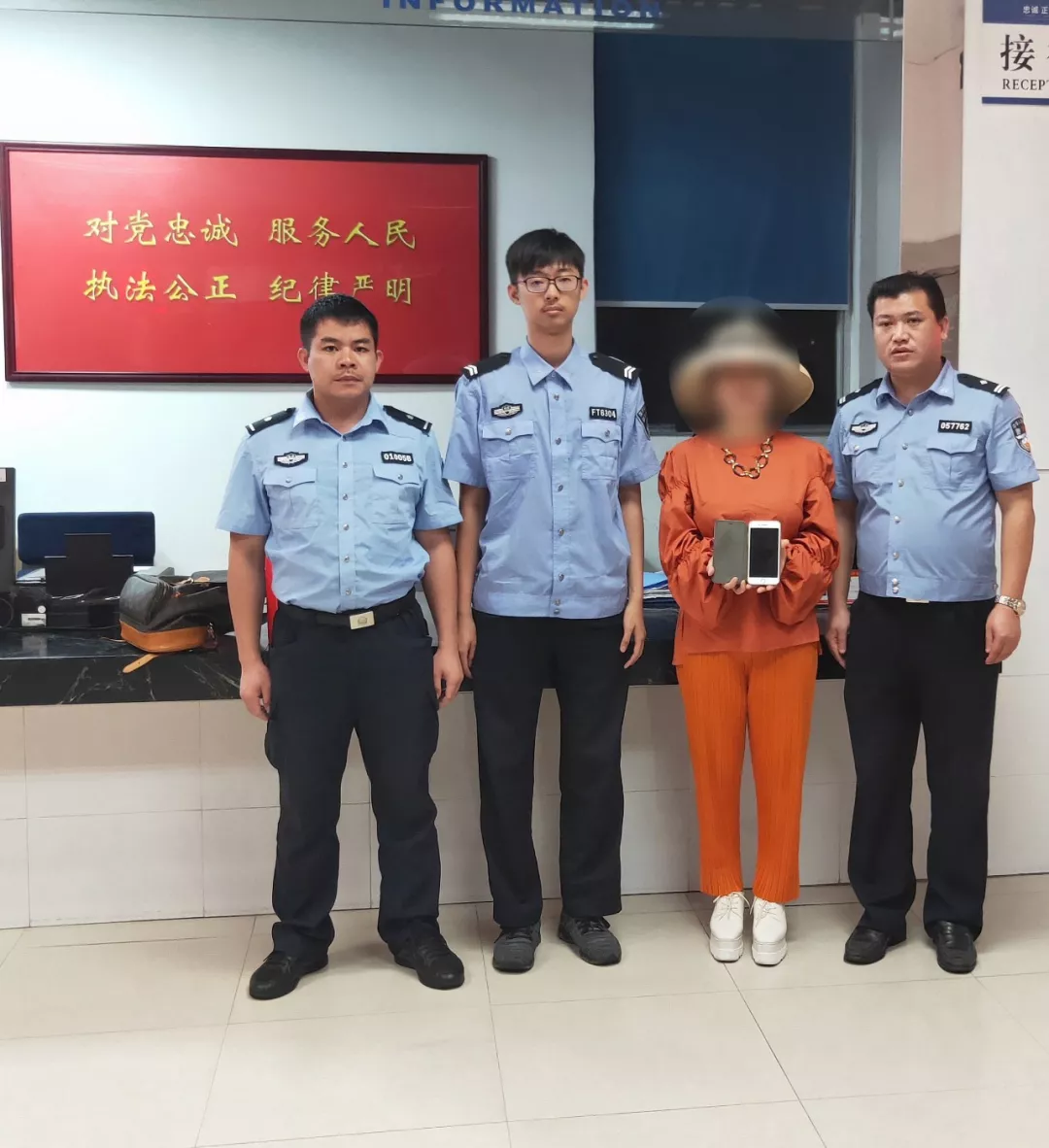 就在此前的一個(gè)小時(shí),民警羅文輝用了一個(gè)小時(shí)的時(shí)間幫她找到了遺失的手機(jī)。