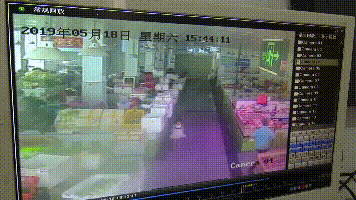 ▲視頻監(jiān)控顯示,女檔主一邊用手臂擋,一邊躲閃,無奈男子繼續(xù)發(fā)難,短短幾秒間,女檔主又被砍了數(shù)刀。