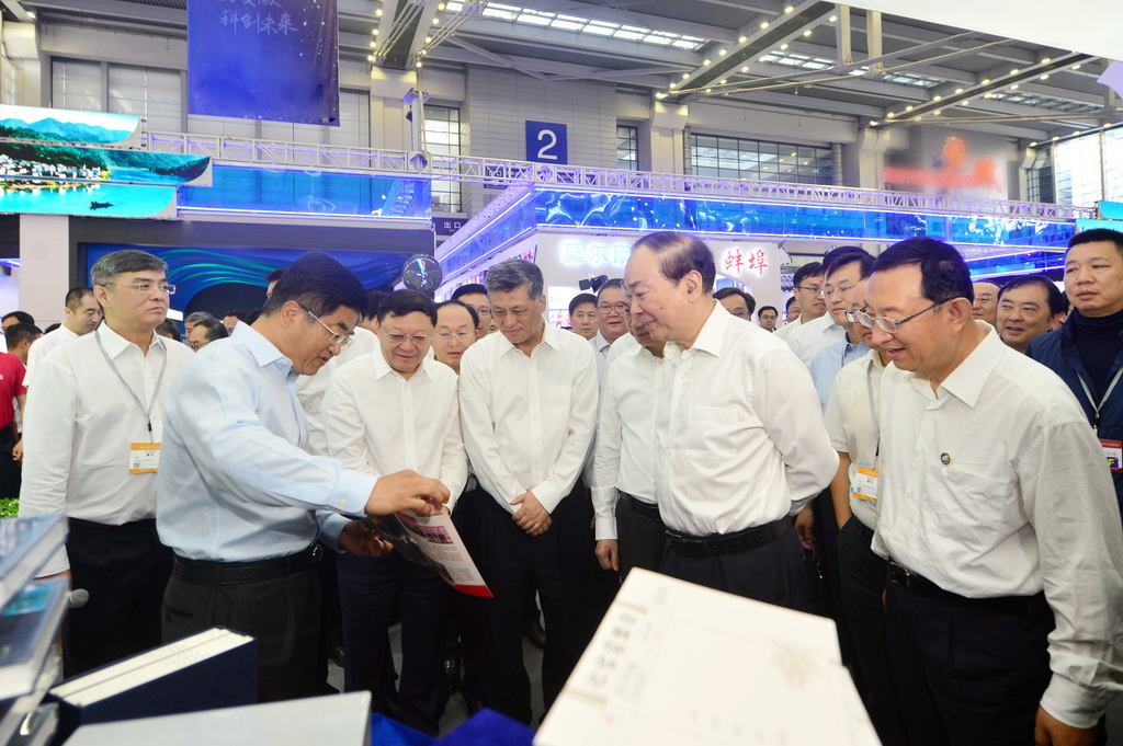 5月18日,中央政治局委員、中央書記處書記、中央宣傳部部長黃坤明,中央政治局委員、廣東省委書記李希等視察深圳文博會多彩貴州館。黃坤明饒有興致地觀看了貴州館的展陳,并對貴州省的組團情況給予充分肯定。