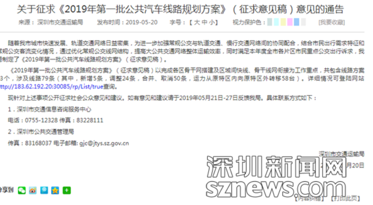 深圳2019年第一批公交線路如何規(guī) ...