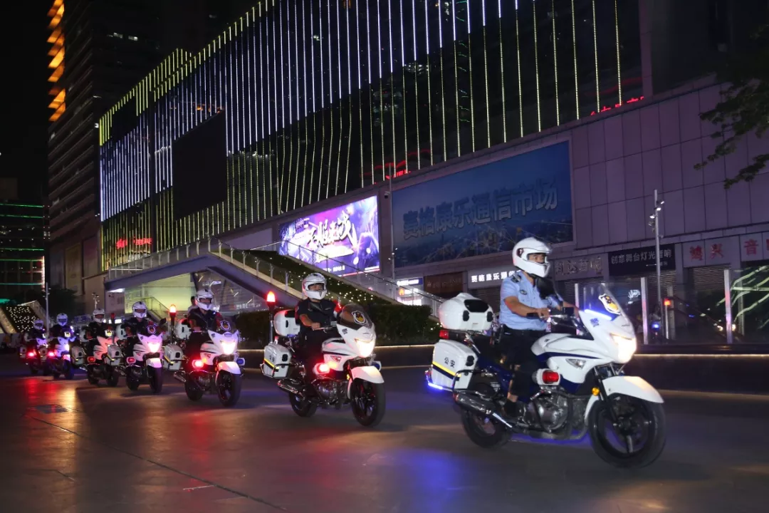 △華強北派出所民警在賽格廣場夜間巡邏。