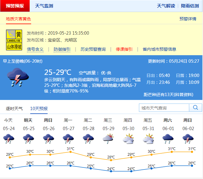 市氣象臺(tái)預(yù)測(cè),25-27日多云悶熱,有陣雨或雷雨,部分時(shí)間雨勢(shì)較大;28日前后有一次雷雨過程。