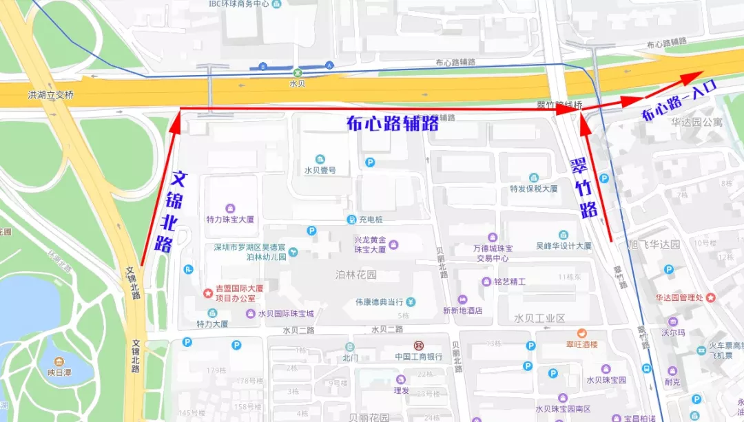 需改經(jīng)翠竹路處入口進(jìn)入布心路主路。