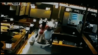 從監(jiān)控畫面可以看到,一名身穿白色上衣的男子先是打了一名女子一巴掌并踹了一腳,后來又對(duì)其他兩名女子動(dòng)手,而這三名女子正是余小姐和她的兩名朋友。