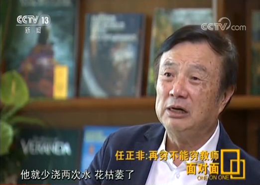 任正非:一樣,我們可以講,在日本一個(gè)小學(xué)教師,娶一個(gè)電影明星做太太,但以前是有名字的,現(xiàn)在我不講這個(gè)名字了,很正常,覺得很榮耀,不覺得不榮耀。當(dāng)然我們國家七十年來有巨大進(jìn)步,這三十年也有巨大改善,對(duì)吧,教師的生活也有大的進(jìn)步,但是我們要看到他們是我們祖國的未來,他們是國家未來。他們擔(dān)負(fù)著花朵,給花朵澆水的人。我們都不給花朵澆水的人一種事業(yè)心一種使命感的話,他就少澆兩次水,花枯萎了,我們不就是一個(gè)喬布斯少掉了嗎?
