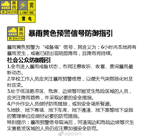 全市暴雨黃色預警信號生效中 市三防辦:停止一切在河施工作業(yè)