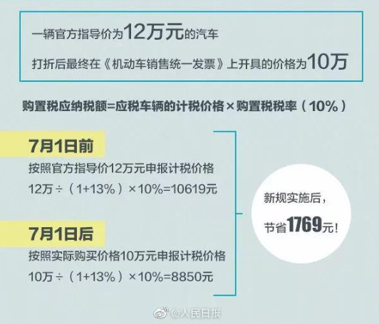 7月1日起,消費(fèi)者購(gòu)買(mǎi)車(chē)輛應(yīng)扣稅款將取決于實(shí)際支付金額