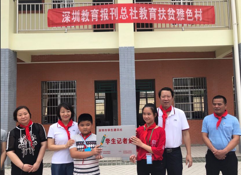 在捐贈(zèng)儀式上,同學(xué)們?yōu)檫h(yuǎn)道而來的叔叔阿姨系上了紅領(lǐng)巾,這些“大紅領(lǐng)巾”陪著“小紅領(lǐng)巾”,提前歡慶六一兒童節(jié)的到來??偵邕€為雅色的孩子帶來一份大禮,那就是深圳學(xué)通社學(xué)生記者站在頌平小學(xué)掛牌。