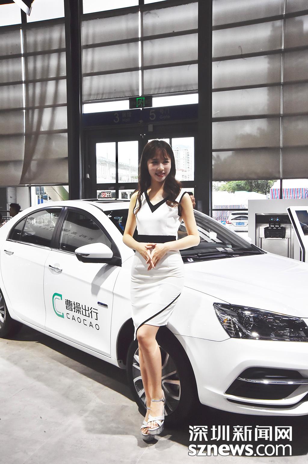 車展現(xiàn)場的車模擺起pose讓市民拍攝