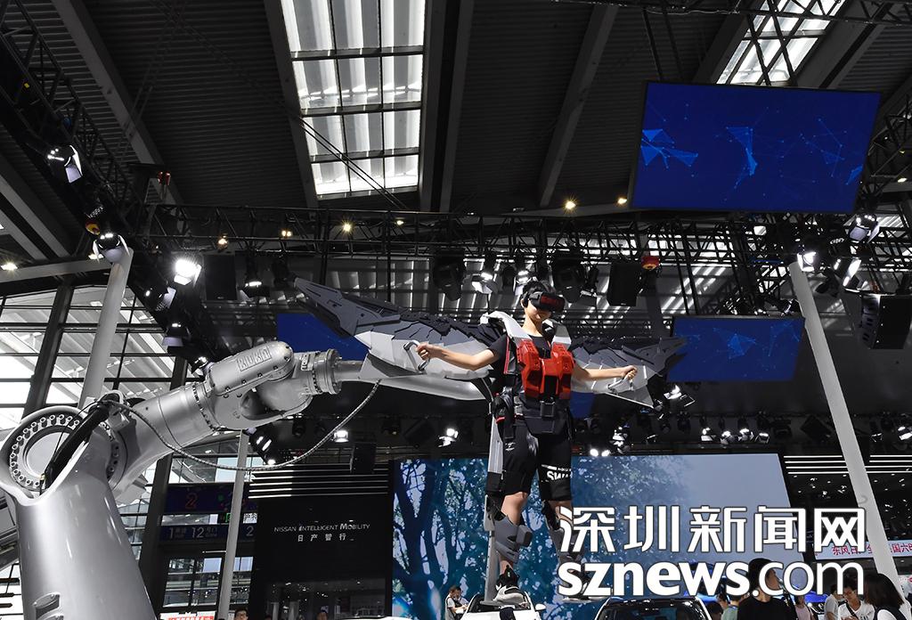 市民通過機(jī)器臂體驗“飛翔”的感覺