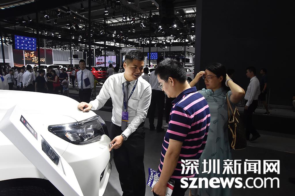 購車顧問向參觀的市民介紹車輛性能