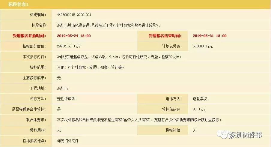 2019年5月24日,深圳市住房和建設局公布《深圳市城市軌道交通3號線東延工程可行性研究和勘察設計總承包》招標公告。