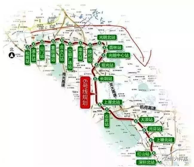 地鐵6號(hào)線分一、二期工程建設(shè),其中,一期線路起自深圳北站,終于松崗站,并與地鐵11號(hào)線換乘,連接龍華、大浪、石巖、光明、公明、松崗等片區(qū),線路全長約37.6公里。