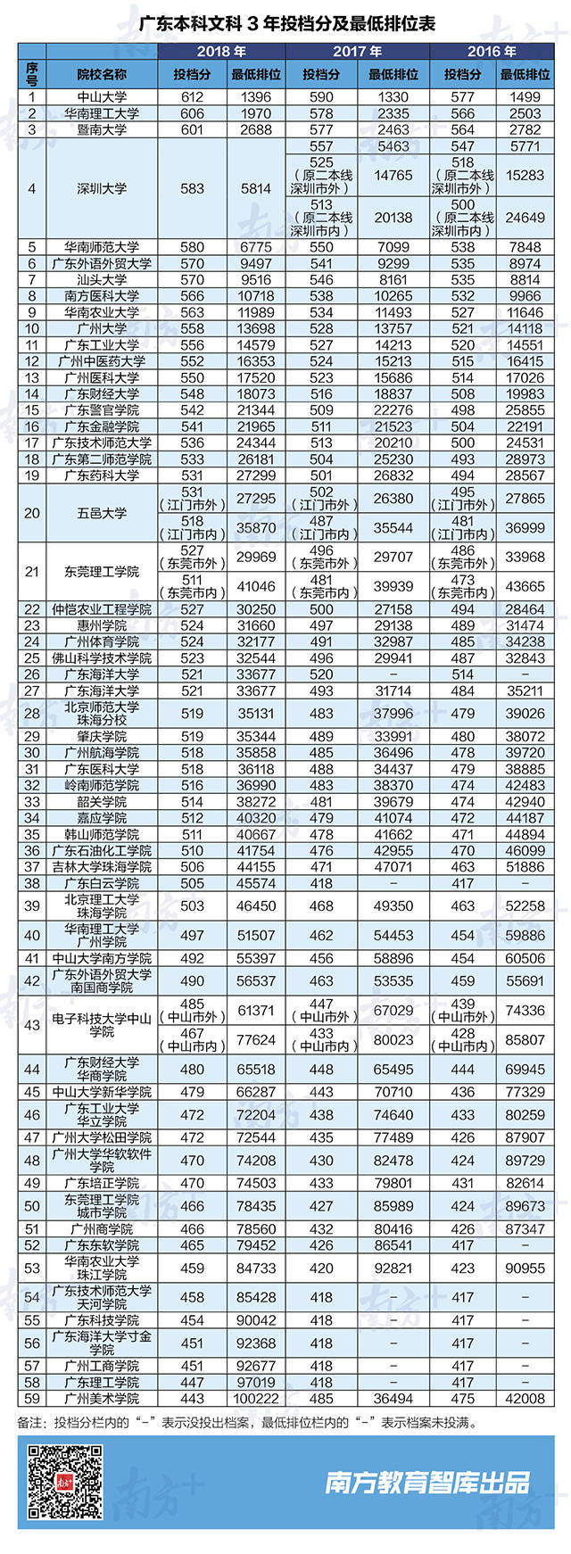 總體來看,廣東文科專業(yè)招生數(shù)量相對(duì)穩(wěn)定,且一些不適應(yīng)社會(huì)發(fā)展的文科專業(yè)正逐步調(diào)整,因此2018年文科一半以上的高校最低排位較2017年上升,文科生要考個(gè)好大學(xué),需要更努把力了。例如華南理工大學(xué)、華南師范大學(xué)、廣州大學(xué)3所高校最低排位比去年有所提升,分別提高365、324和59。