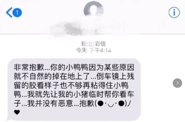 然后……車主還收到了條短信↓↓↓