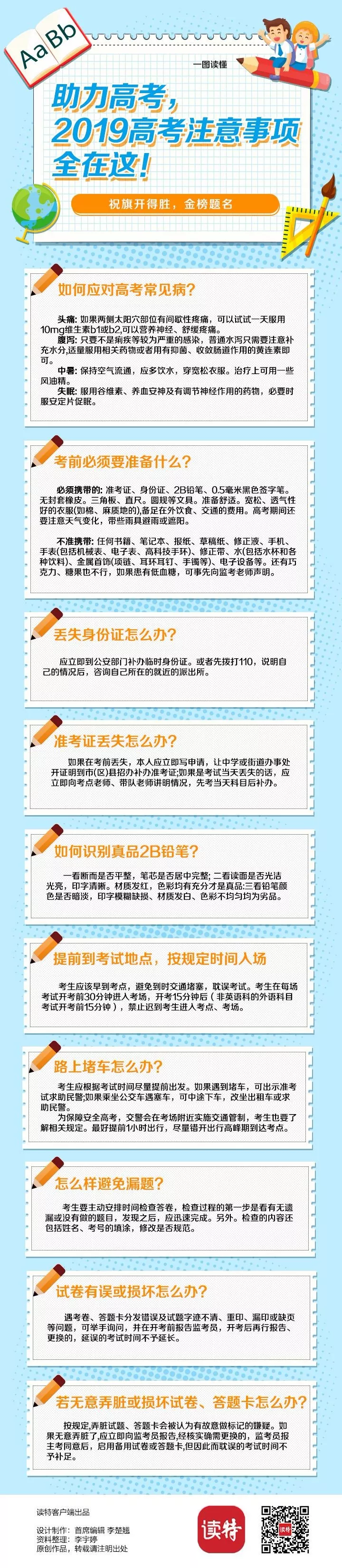 另外,小編還專門為你們準(zhǔn)備了一圖讀懂高考注意事項(xiàng)。