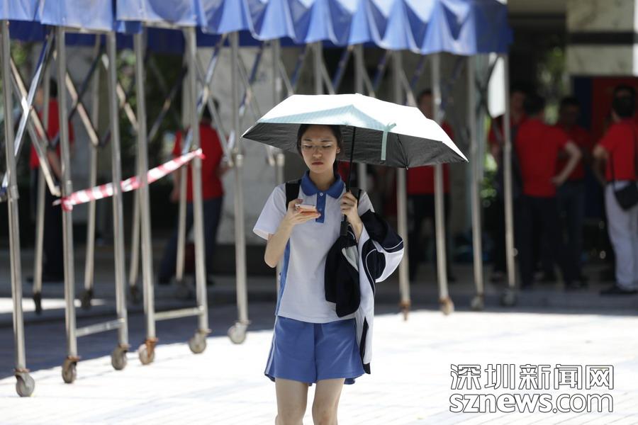 高考首日,深圳夏天的炎熱初顯威力,各路高考保障人員在熾熱的陽光下有序開展工作:交警鐵騎護(hù)送考生順利抵達(dá)考場(chǎng);愛心出租車免費(fèi)接送考生;高考志愿者幫助協(xié)調(diào)考場(chǎng)外秩序……同時(shí),比陽光更“熾熱”的是送考家長們的熱切和關(guān)心。