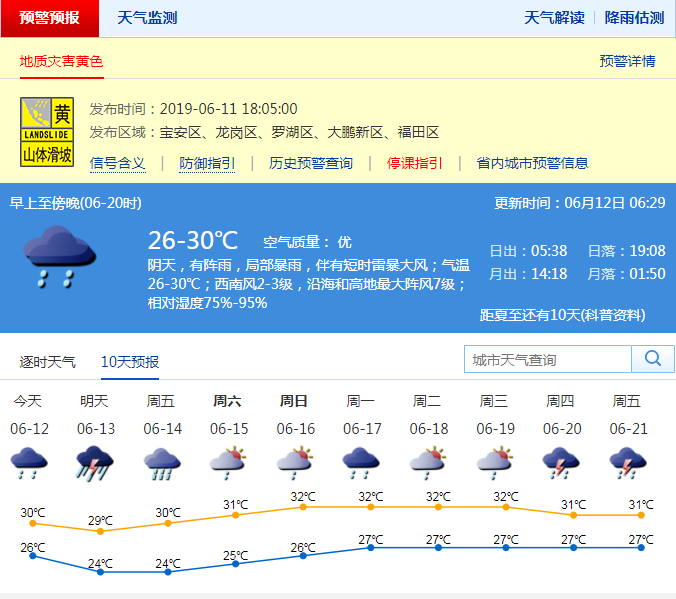 深圳新聞網2019年6月12日訊 10日下班高峰期的一場狂風暴雨橫掃深圳,不禁有網友疑惑,這難道是臺風嗎?這當然不是臺風,它是強對流天氣伴隨的短時大風,最大陣風有時甚至和臺風不相上下,雖然陣風強,但強對流大風的持續(xù)時間較短;“一秒天黑”的深圳,11日下班時段又有一場強雷雨橫掃,預計12、13日降雨仍頻密。
