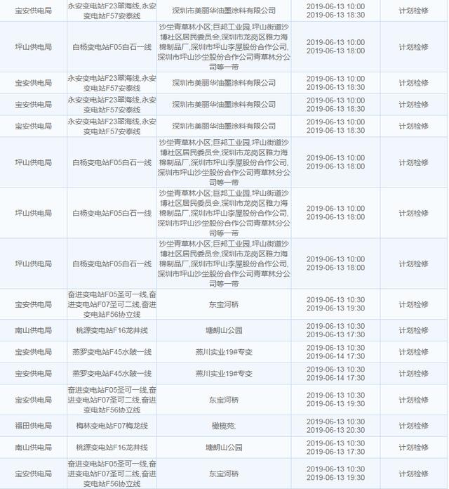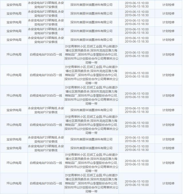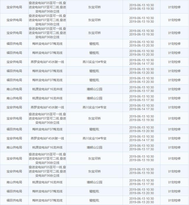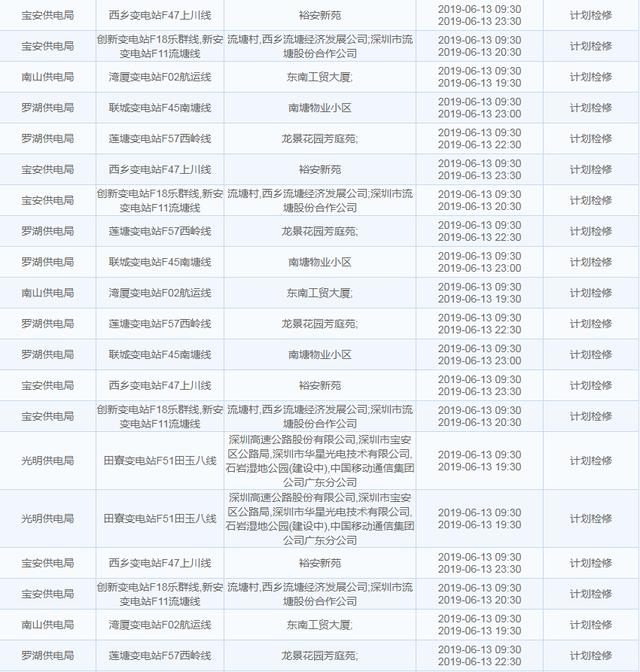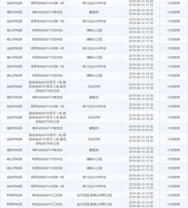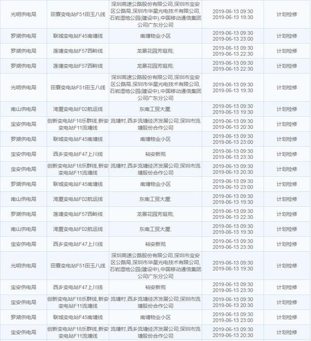 南方電網發(fā)布6月13日至6月16日深圳停電計劃 涉及多個區(qū)
