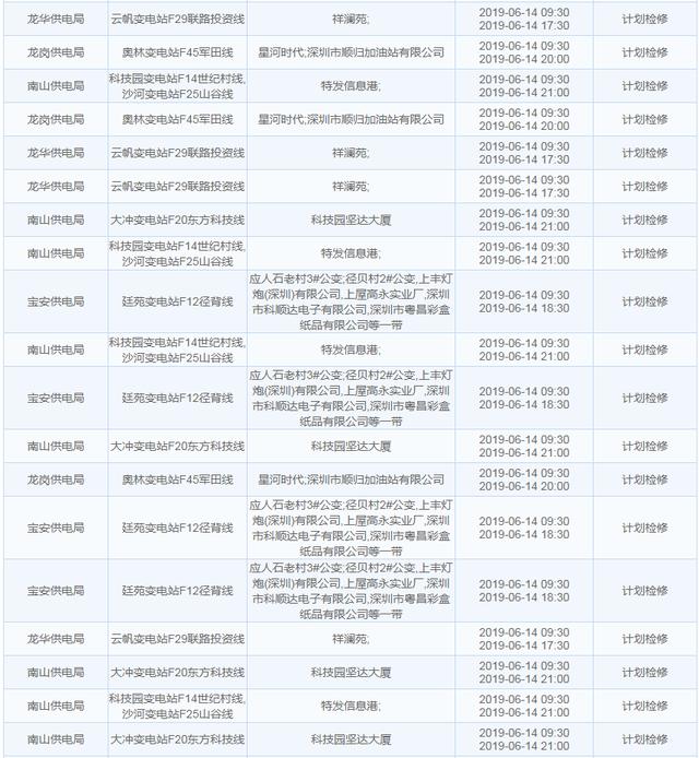 南方電網(wǎng)發(fā)布6月13日至6月16日深圳停電計(jì)劃 涉及多個(gè)區(qū)