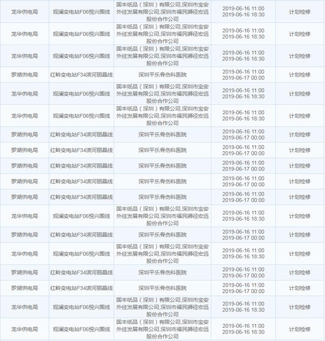 南方電網發(fā)布6月13日至6月16日深圳停電計劃 涉及多個區(qū)