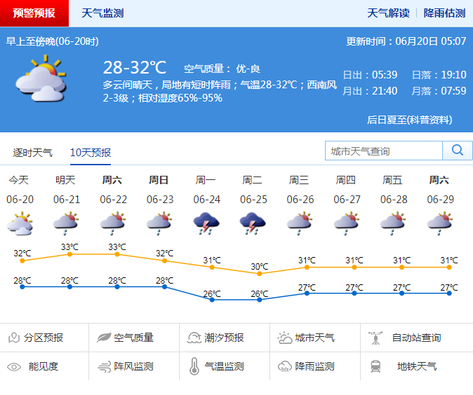 預(yù)計中考期間(6月22日至24日)天氣炎熱,部分時間有雷陣雨。其中,20日至22日多云炎熱,23日至24日多云間陰天,有雷陣雨,提醒考生做好防暑降溫準備。