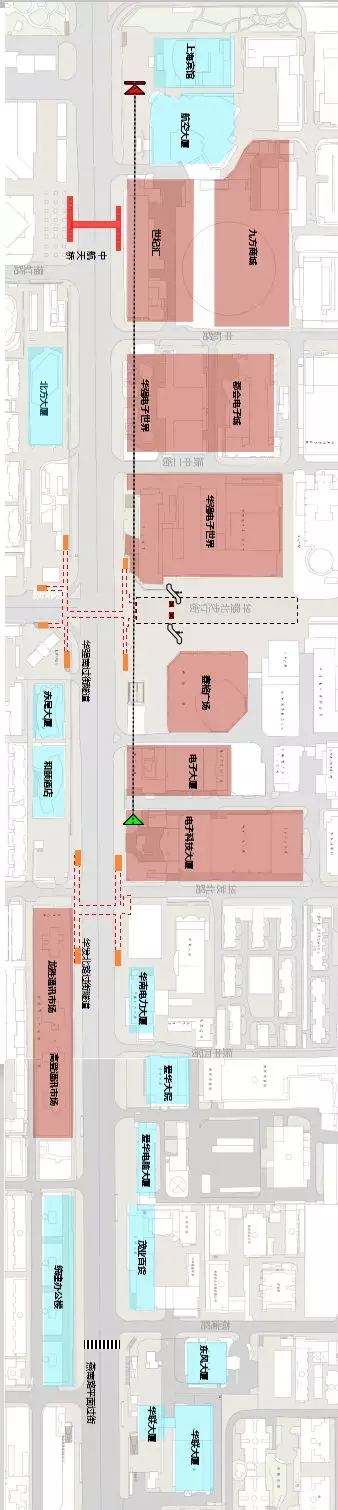中航天橋、華強南地下過街隧道、華發(fā)北路過街隧道以及燕南路地面過街斑馬線。