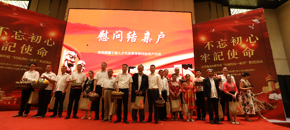“歷史告訴我們,沒有共產(chǎn)黨,就沒有新中國(guó);沒有共產(chǎn)黨,也沒有我們新疆各族人民今天的幸福生活,在這個(gè)特殊的日子里,讓我們繼續(xù)攜起手來,不忘初心,牢記使命,緊密團(tuán)結(jié)在以習(xí)近平同志為核心的黨中央周圍,聽黨話,跟黨走,挑起重?fù)?dān),勇當(dāng)尖兵,共同為實(shí)現(xiàn)新疆社會(huì)穩(wěn)定和長(zhǎng)治久安總目標(biāo),為受援地打贏脫貧攻堅(jiān)戰(zhàn)而努力奮斗!”深圳援疆前方指揮部總指揮楊春生在致辭中說到。