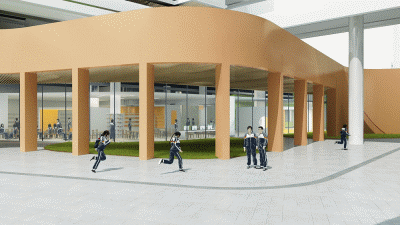 規(guī)劃采用了S型的布局關(guān)系,初中部和小學(xué)部各置一側(cè),各自有相對獨(dú)立的院落空間的同時,能夠照顧到空間的流通性,使得二者能夠方便地共享公共教學(xué)設(shè)施。